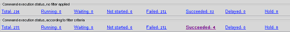 The number of commands displayed in the Monitoring tab can be controlled by applying filters, as described in Filtering Commands.