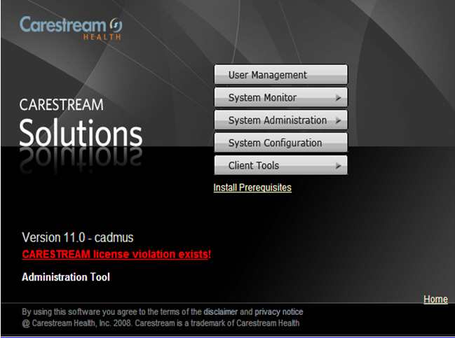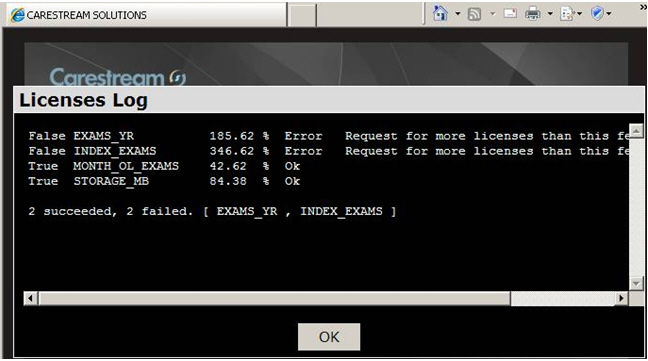 Important: The warning does not interfere with system operation. You must contact a Carestream Health representative to check or renew the license.